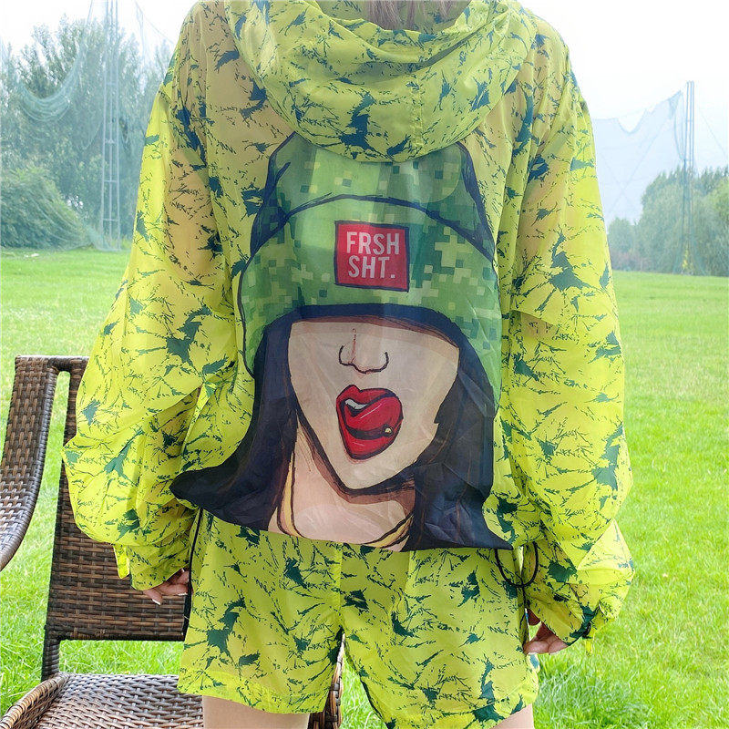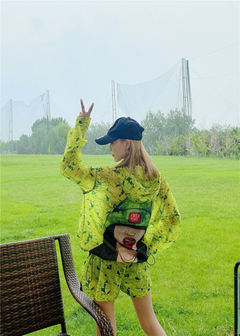 Eurostock 2020 Summer new Beauty Pattern printed Lianhood jacket shorts Sport Leisure sunscreen Suit Women