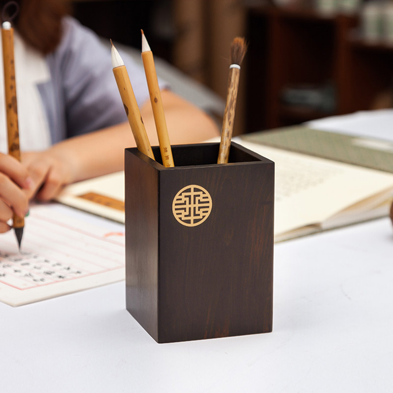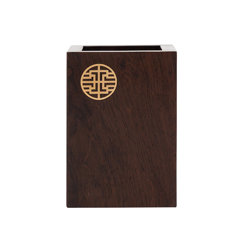 Purple sandalwood ruyi inlaid copper brush pen holder storage box creative retro student desktop stationery storage Chinese style multi-function pen holder ornaments large capacity pen barrel simple office supplies