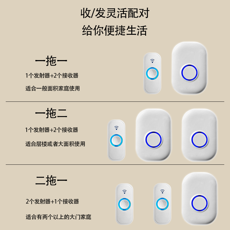 Wireless doorbell Home Bell Home doorbell Punch Free Office Electronic Home Outdoor Waterproof Rain