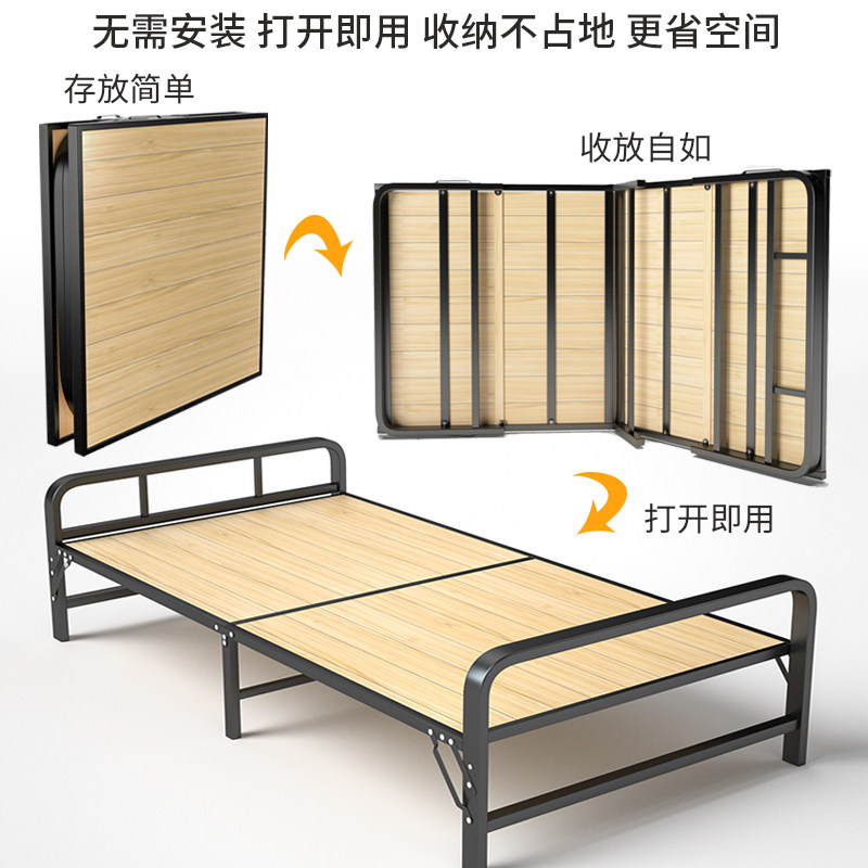 Folding bed single person double office lunch break artifact children's simple 1 2 m household portable hard board bamboo and wood bed