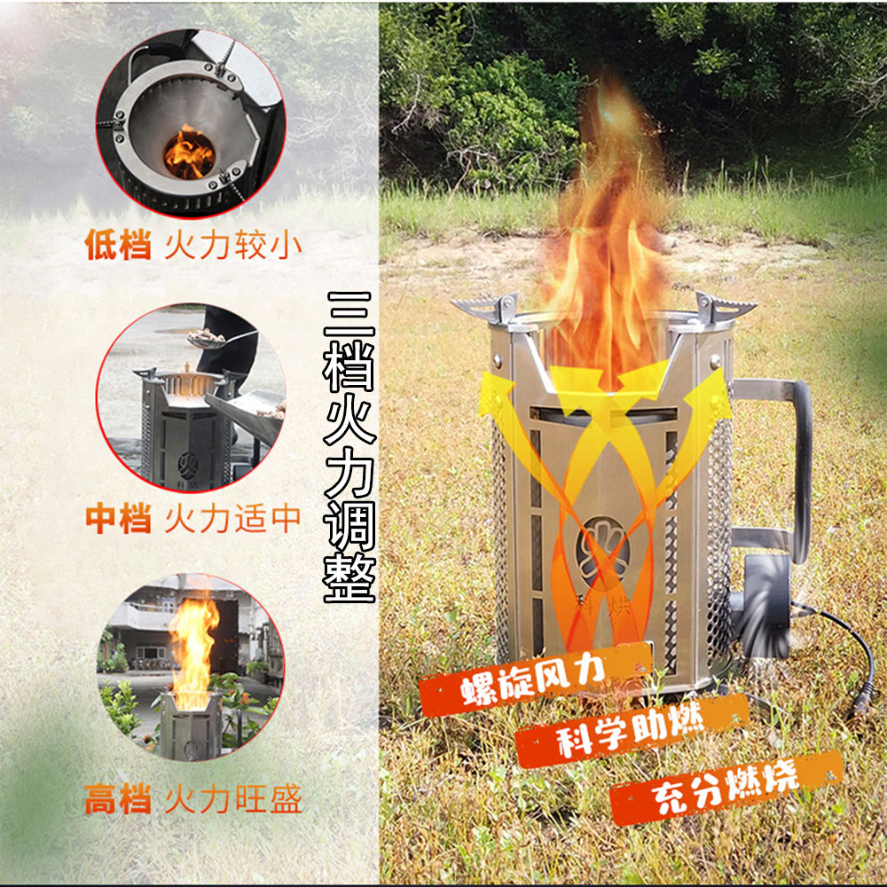 Outdoor portable wood stove Self-driving camping stove Co-baked blow wind-style picnic barbecue net red wood stove