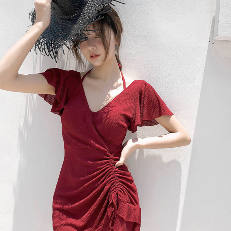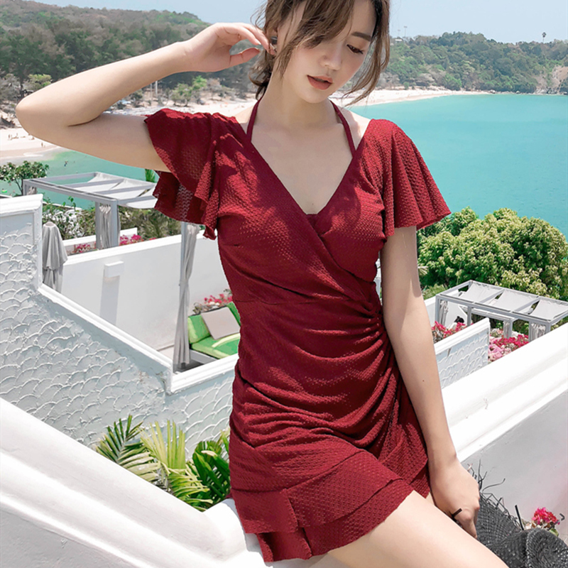 Swimsuit female conservative 2022 new water park fairy fan long version cover belly fashion ins small chest gathered
