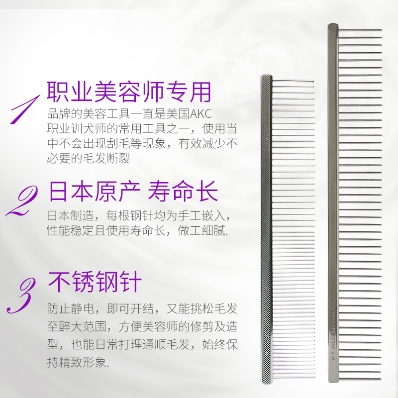 Made in Japan Belgian VIP Stainless Steel Straight Comb Dog Cat Daily Grooming Grooming Trimming Tool
