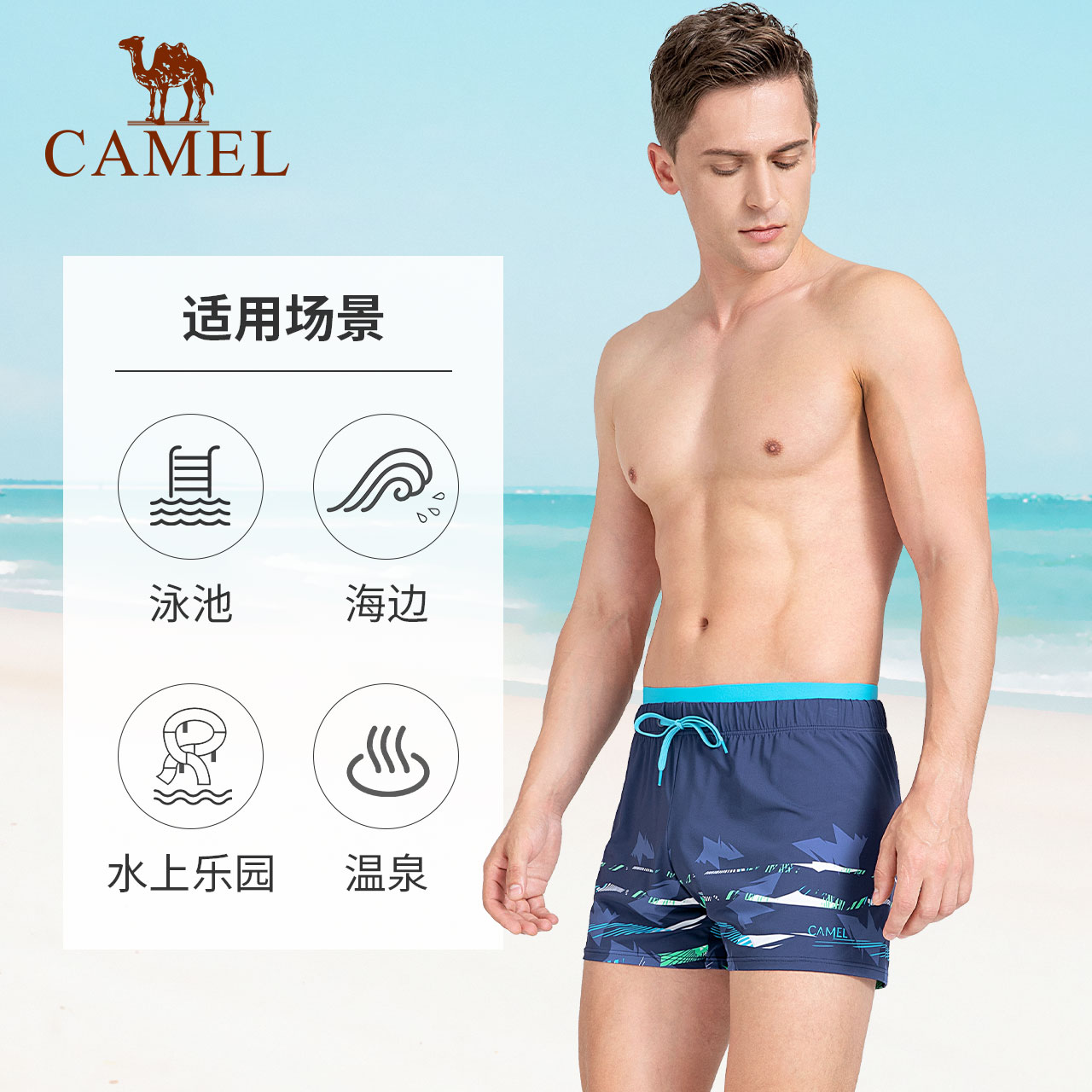 Camel men's swimsuit flat angle anti-embarrassment swimming trunks loose beach pants spa shorts professional five-point swimming trunks for men