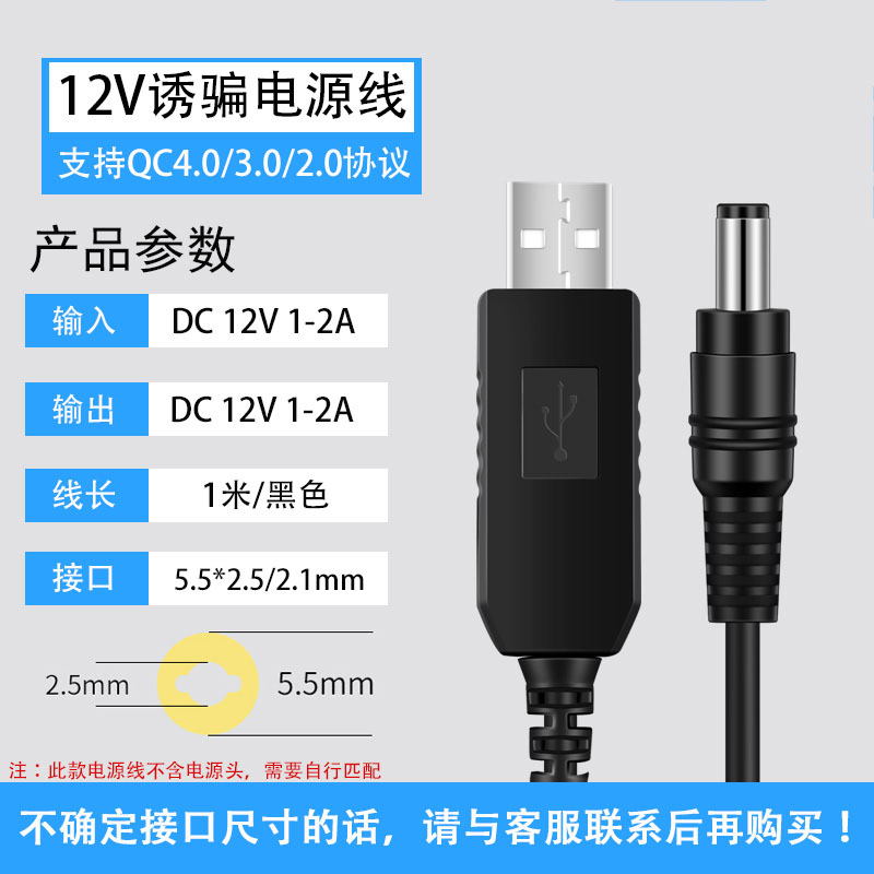 Light cat router usb9V power lured wire QC pressurization 12V 24W fluorescent board camera on-board data line