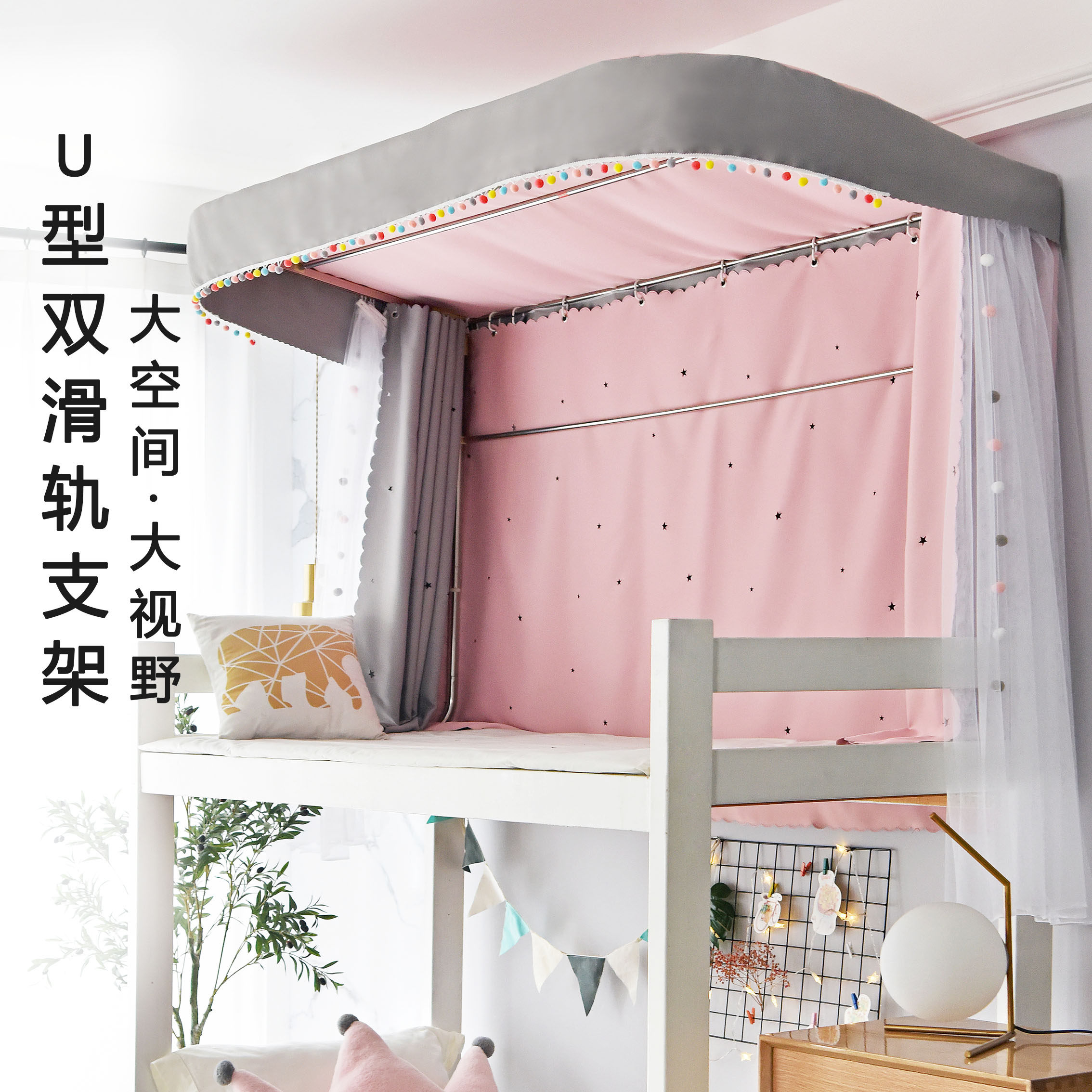 (Morandi) Powder Bed Curtain 1 sheet Morandi) Grey bed curtain 1 sheet (upper bed recommended) 3 powder 3 yarn top u type bracket powder 1 sheet of grey 1 sheet top u type bracket powder 2 pieces of ash
