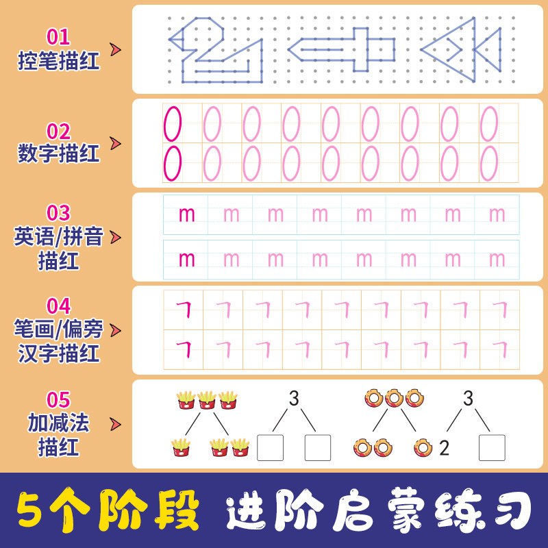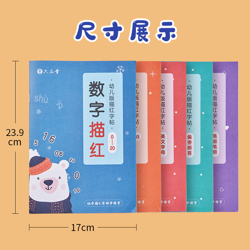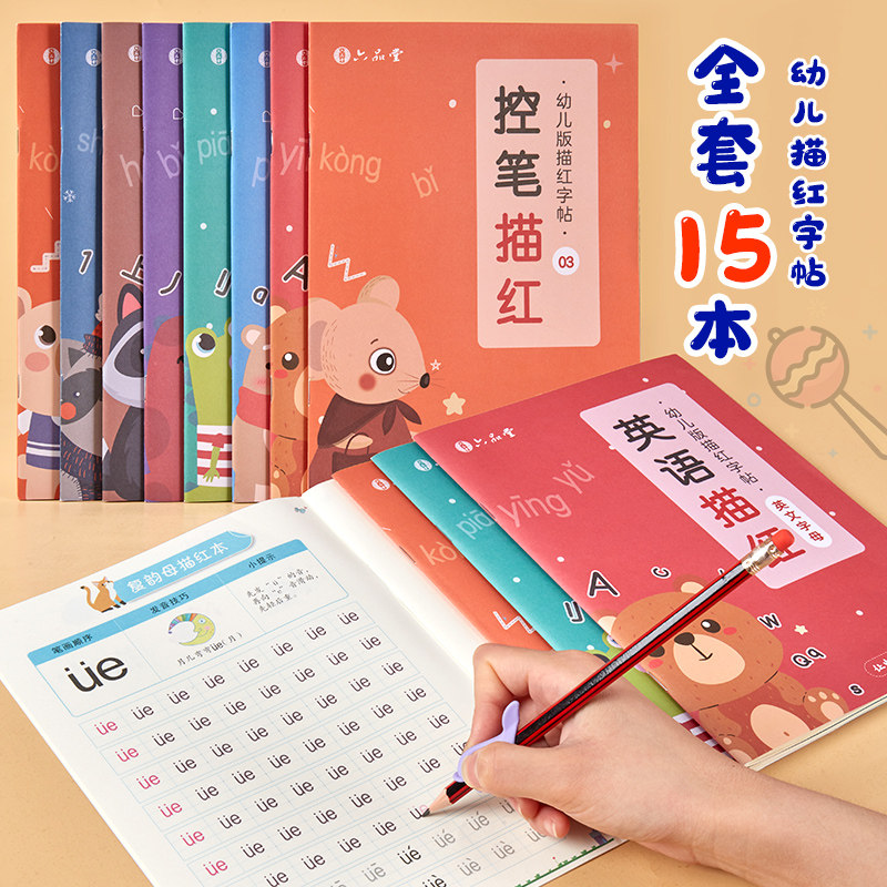 A full set of 15 books + giveaways Control pen drawing red 3 sets digital drawing red 4 suits English Pinyin drawing red 3 set strokes sideways Chinese characters drawing red 3 books Digital red 0-10 digital red 0-20 digital red 0-50 digital red 0-100 addition and subtraction red within 10 plus subtraction red 20 or less English red Pinyin red 01 Pinyin red 02 Stroke red Red Side red Chinese characters red