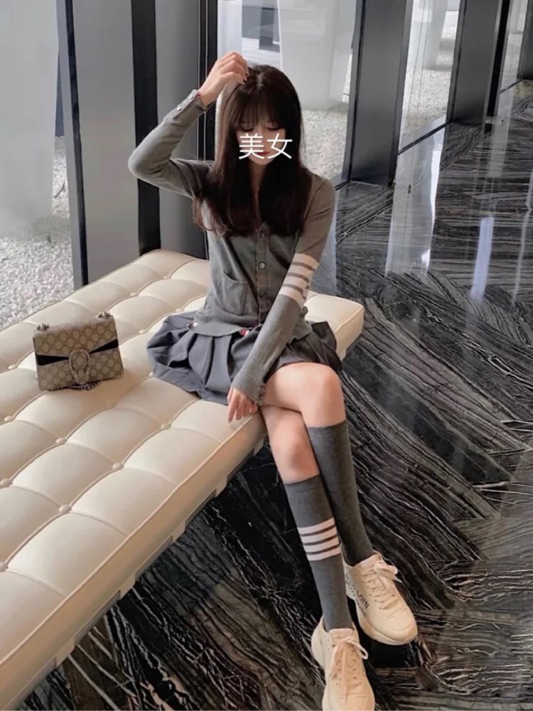 TB socks women short tide Net red super fire spring summer thin tube INS Gray four bar stripes JK calf stockings
