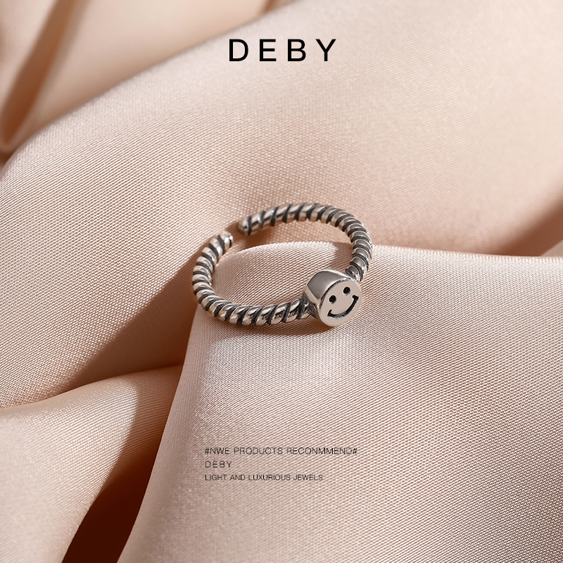925 sterling silver smiley face ring female fashion personality ins tide retro style index finger light luxury niche design exquisite ring