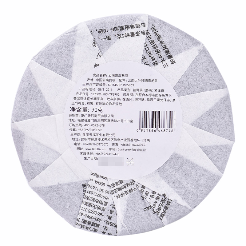 Tianfu TEA Yunnan Pu'ER RIPE Tea Pu'ER RIPE CAKE Home Office Travel TEA 90G