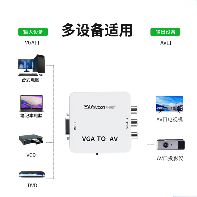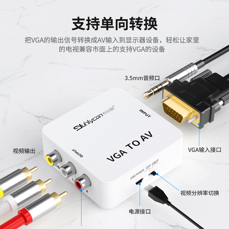 Yuhelian VGA to AV converter Computer connected to the old TV PC to TV connector cable Display conversion cable S-terminal interface Video conversion box connected to the old TV
