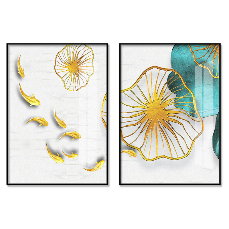 Light Extravagant Nine Fishmonsoon Dining Hall Two-linked Painted Living Room Sofa Background Decoration Painting New Chinese Style Chinese Wind Lotus Leaf Mural Painting