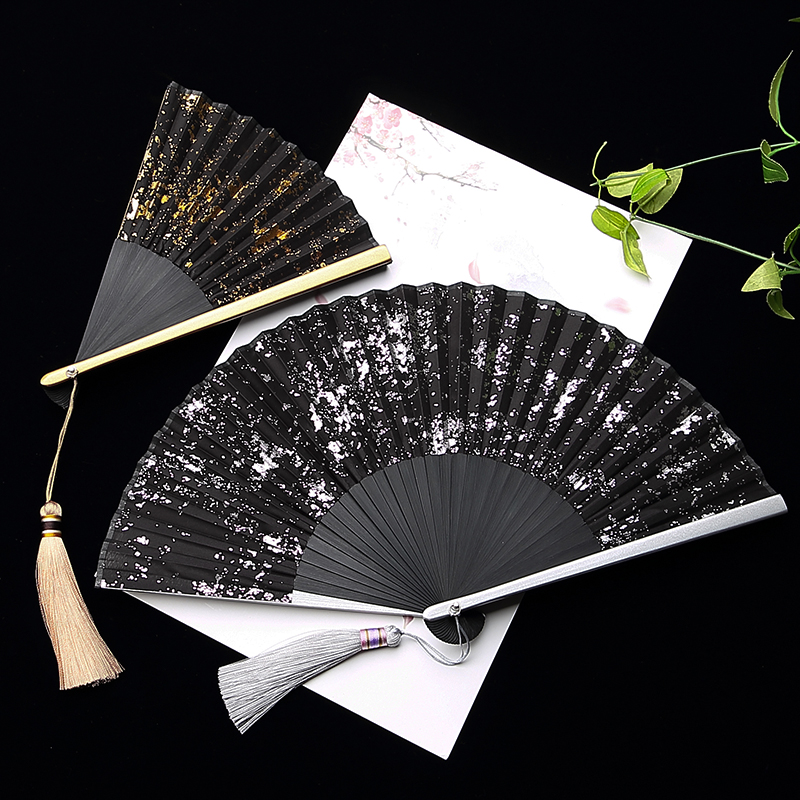Sprinkling gold fan Black bone Sprinkling silver fan Black bone