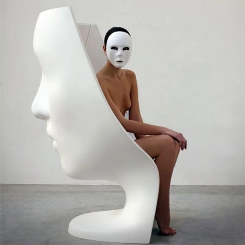 Glass Fiber Casual Seat Face Sculpture Mask Sofa Outdoor Mall Beauty Chen Art Pendulum rest waiting chair