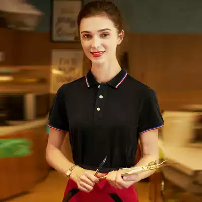 Hotel waiter work clothes short-sleeved t-shirt custom hot pot barbecue restaurant catering summer clothes men and women embroidery printed logo
