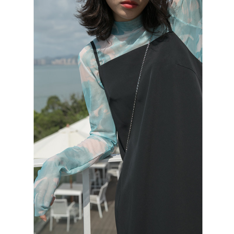 Hello Kanonza dye printed net yarn Nets for a T-shirt female summer and half height neckline with long sleeve summer dress 2022 new