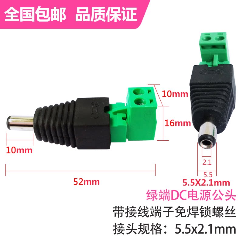 DC5 5×2 1mm power supply male and female DC with connection end welding-free lock screw green end male and female power supply connector