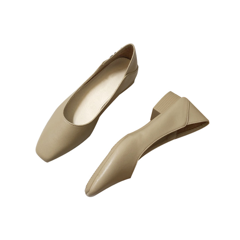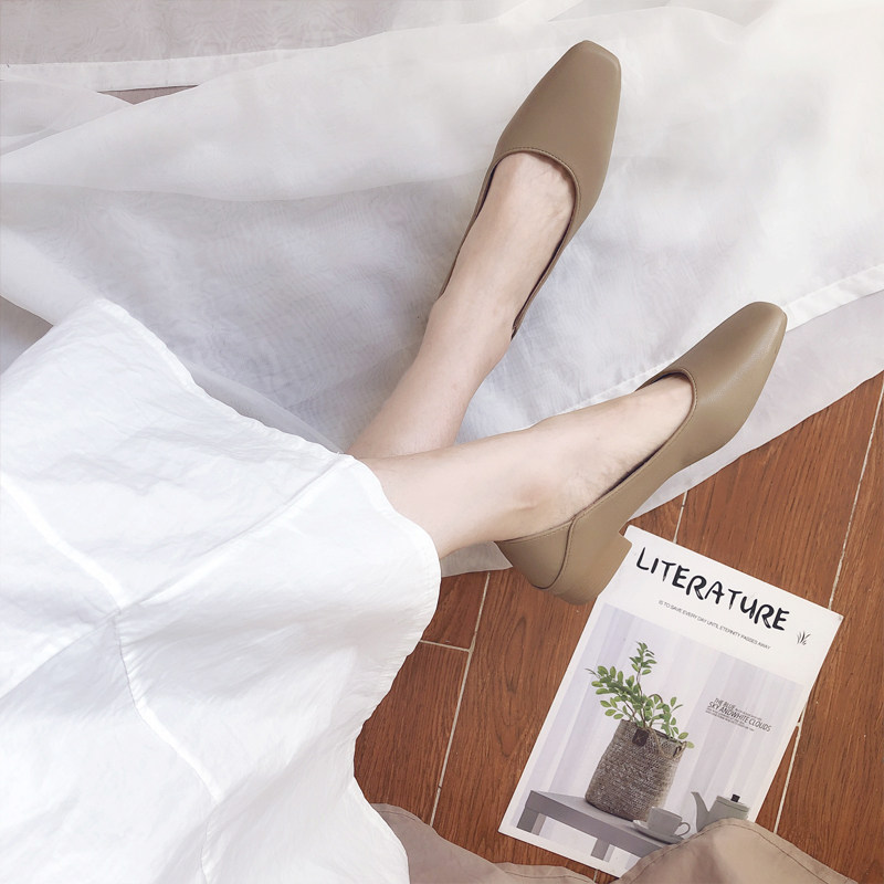 Square toe single shoes women's flat bottom 2021 new all-match chunky heel fairy style work shoes women's medium heel small leather shoes grandma shoes