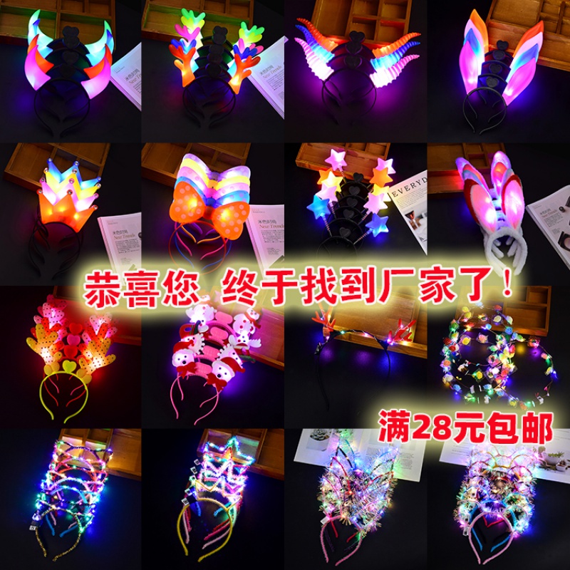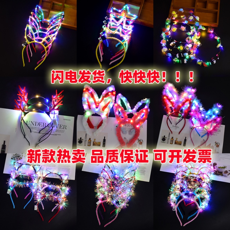 Calf horns black hoop antlers black hoop ox horns black hoop crown black hoop sheep horns black hoop rabbit ears Korean bowknot five-pointed star spring headband plush rabbit ears 14 lights golden rabbit ears 14 lights antlers ten lights cat ears ten lights rabbit ears