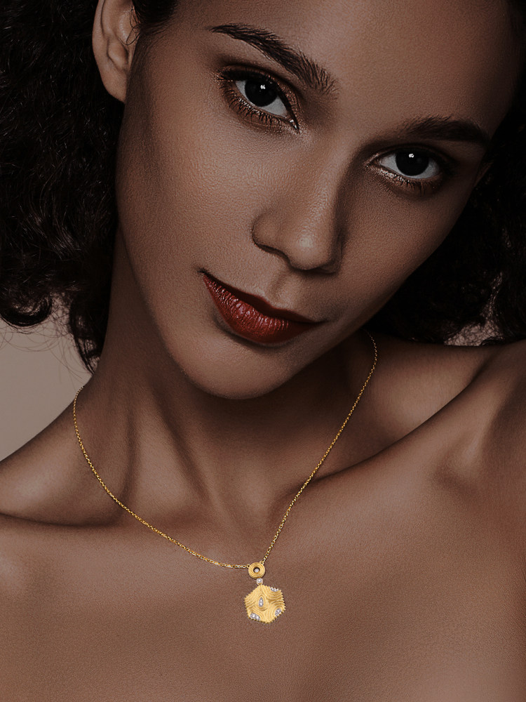 Original design Jewelry 18K Gold Group Inlaid Diamond Necklace Women's Fashion Pendant Jewellery Short lock bone chain