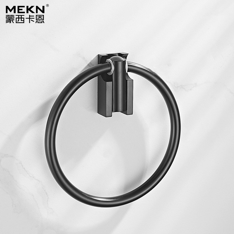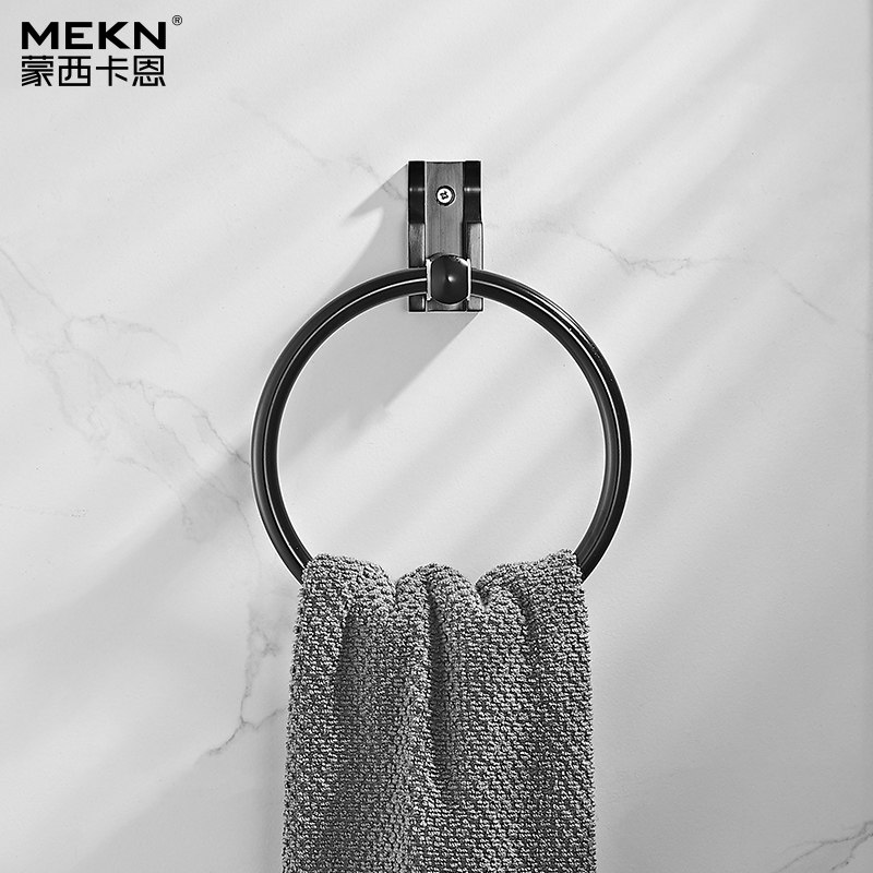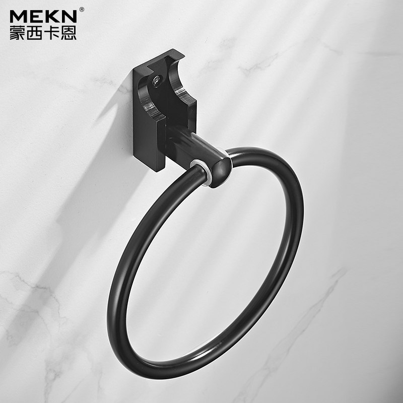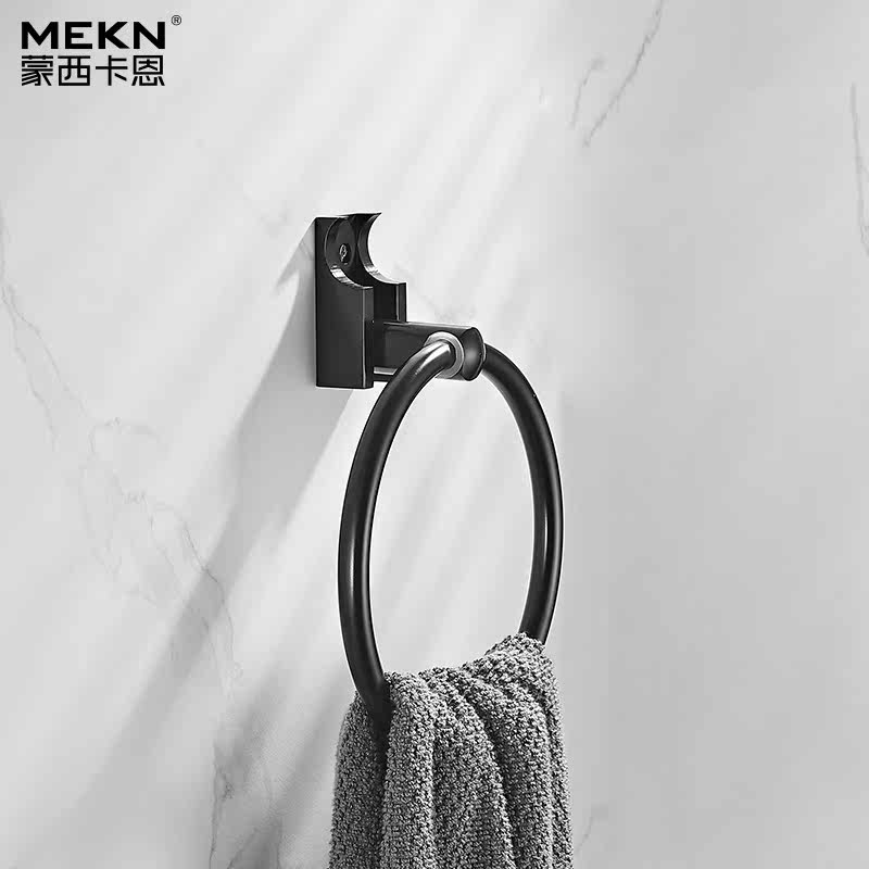 Black Space Aluminum Folding Towel Ring MAKEUP ROOM HAIR TOWEL RACK DECORATION TOWEL RING BATHROOM TOWELS HANGING FREE OF PUNCH