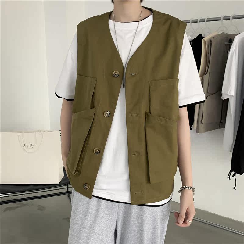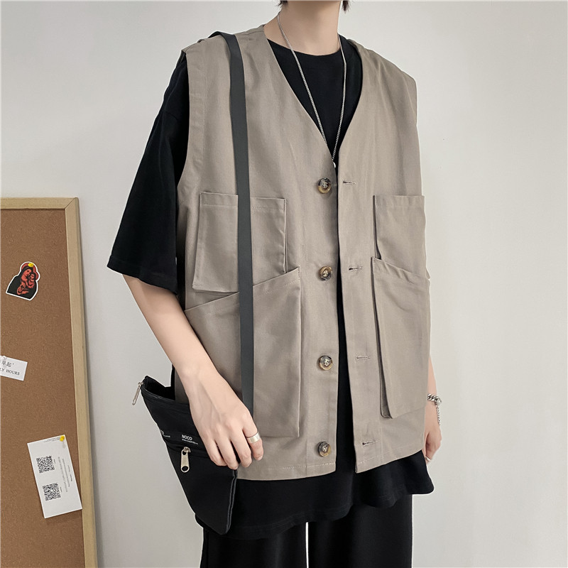 Summer ins Chains Chains Day Department Overalls Machiale Male Port Wind relaxation Outside Wearing Kan Shoulder Vest Multi-Pocket Jacket