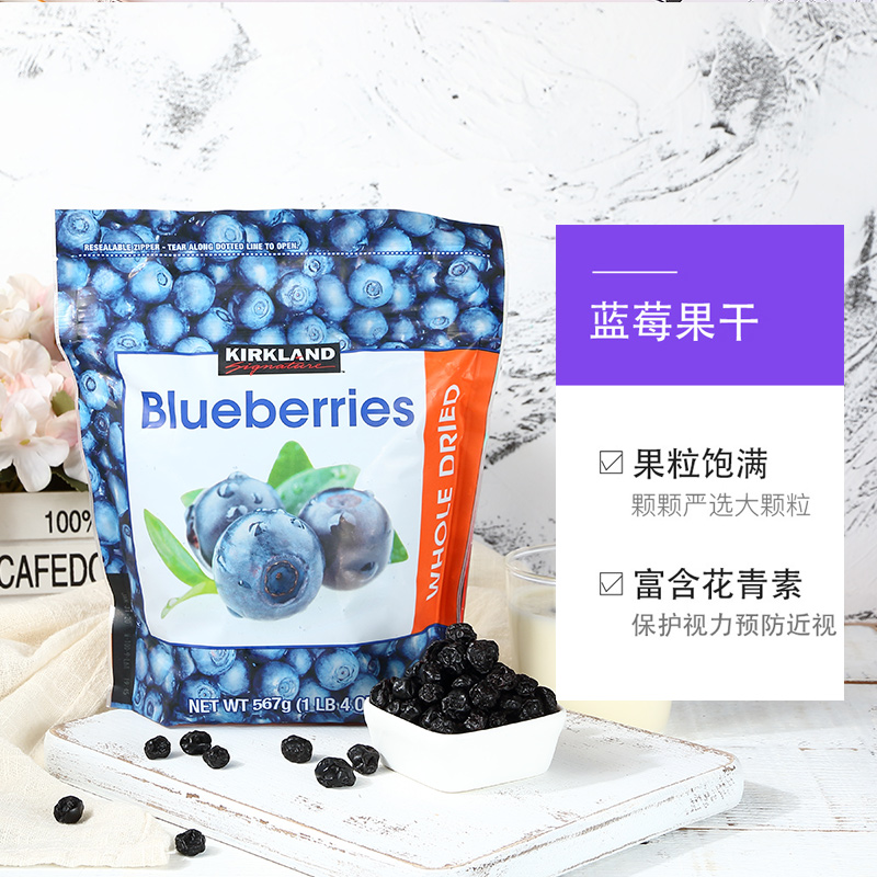 American imported kirkland Kirkland blueberry dried 567g * 2 bags of baked preserved fruit preserves leisure healthy snacks