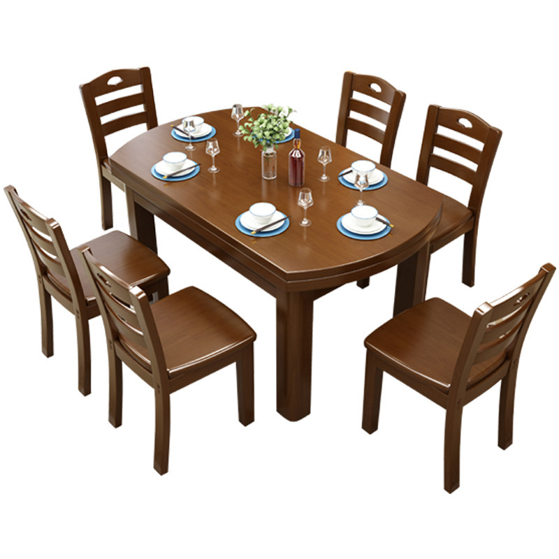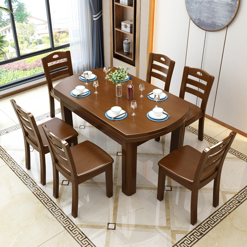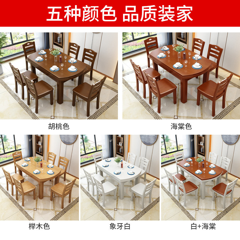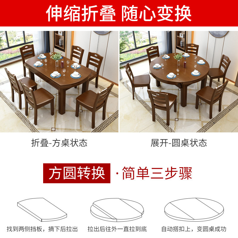 All solid wood dining table and chair combination folding round table modern minimalist small apartment square and round dual-purpose household retractable rice table