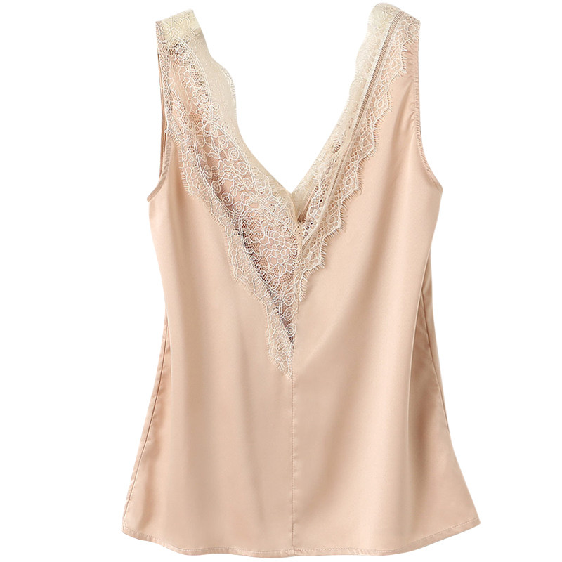2020 summer new camisole women's inner solid color fashion exquisite lace V-neck T-shirt sexy bottoming top