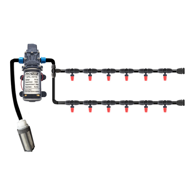 12 m 12 m pipe 10 spray head 60W water pump suit 17 m 15 spray head 60W water pump suit 22 m pipe 20 spray head 60W water pump suit 27 m pipe 25 spray head 60W water pump