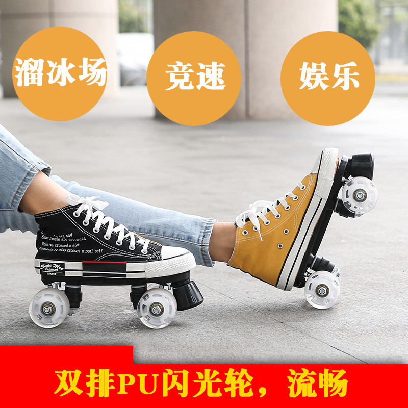 Double row of ice skates adults Double rows of roller skates Roller Skates Four Wheels Skates Men and women Synchronized Skate Skate Glitter Professional