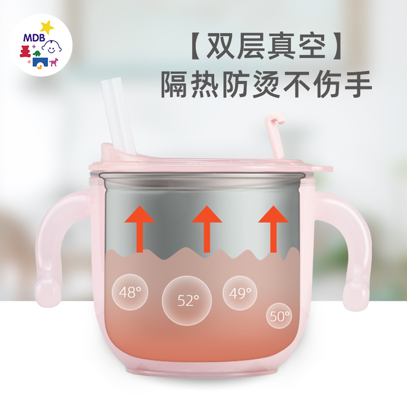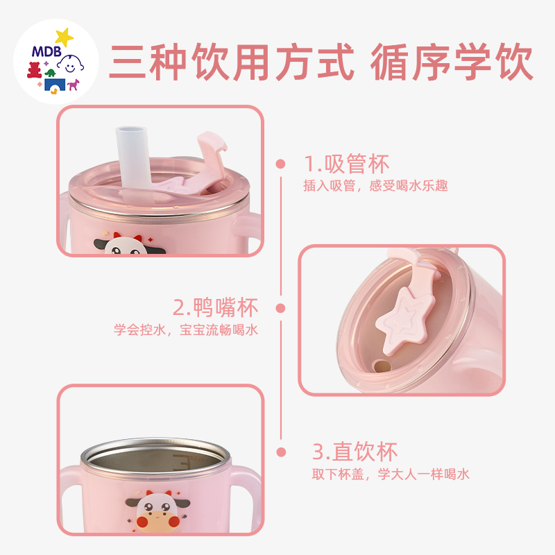 mdb children's milk cup with scale drop-proof stainless steel straw cup Baby household drinking water learning to drink duckbill cup