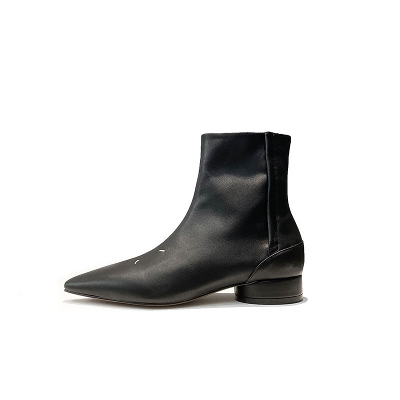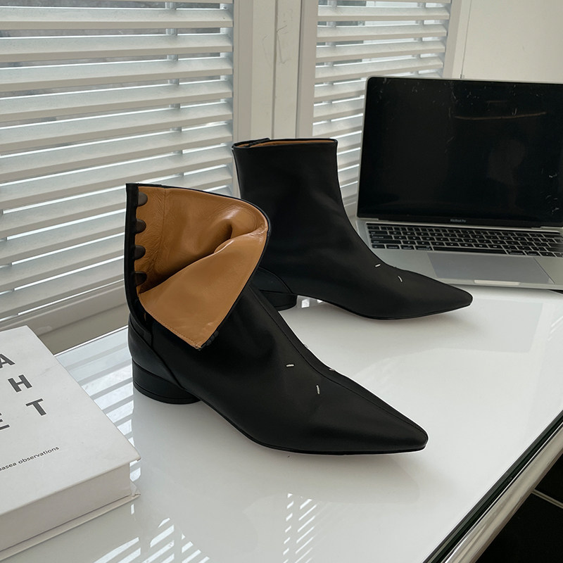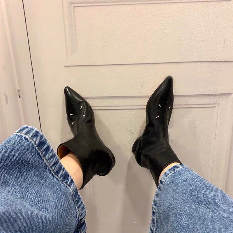 MM6 TIDE net red 2021 new pointed short boots coarse heel genuine leather gush small crowdwomen shoes ins tide Europe station