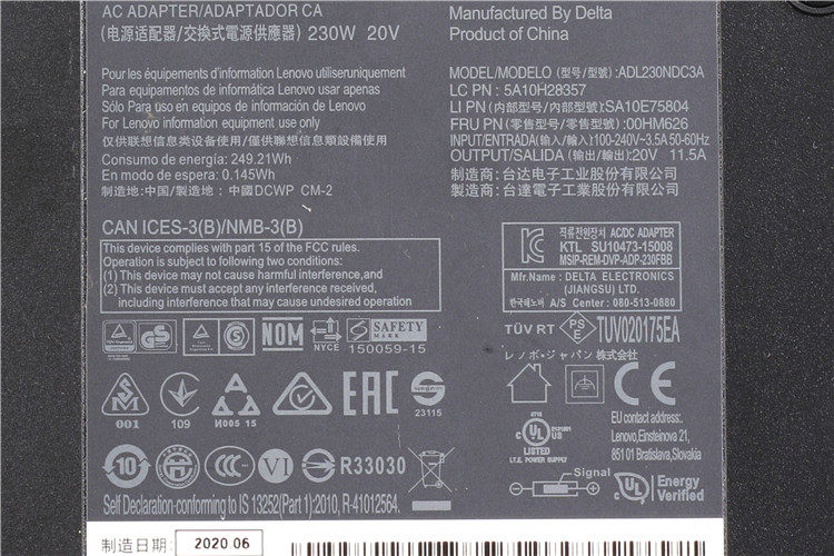 Lenovo P50 P51 P52W540W541 square mouth with pin 20V11 5A 230W laptop power adapter