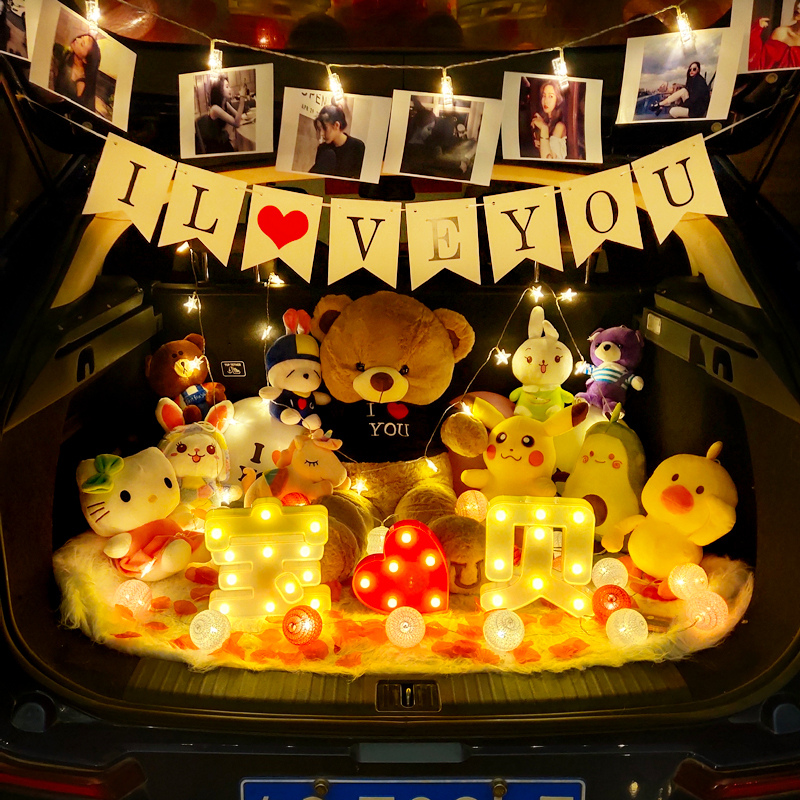 Car trunk doll surprise proposal decoration Creative supplies Romantic birthday children confession scene decoration