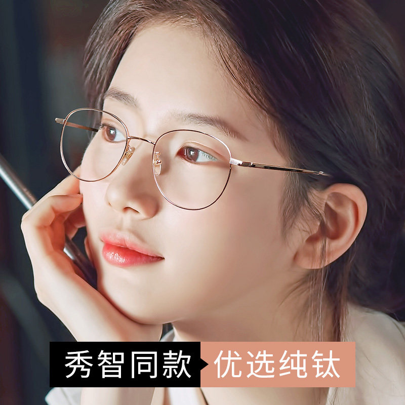 Pure Titanium Nearsightedness Glasses Female Korean version Tidal Net Red-shaped round eye frames can be equipped with degree men's large frame flat light eyes