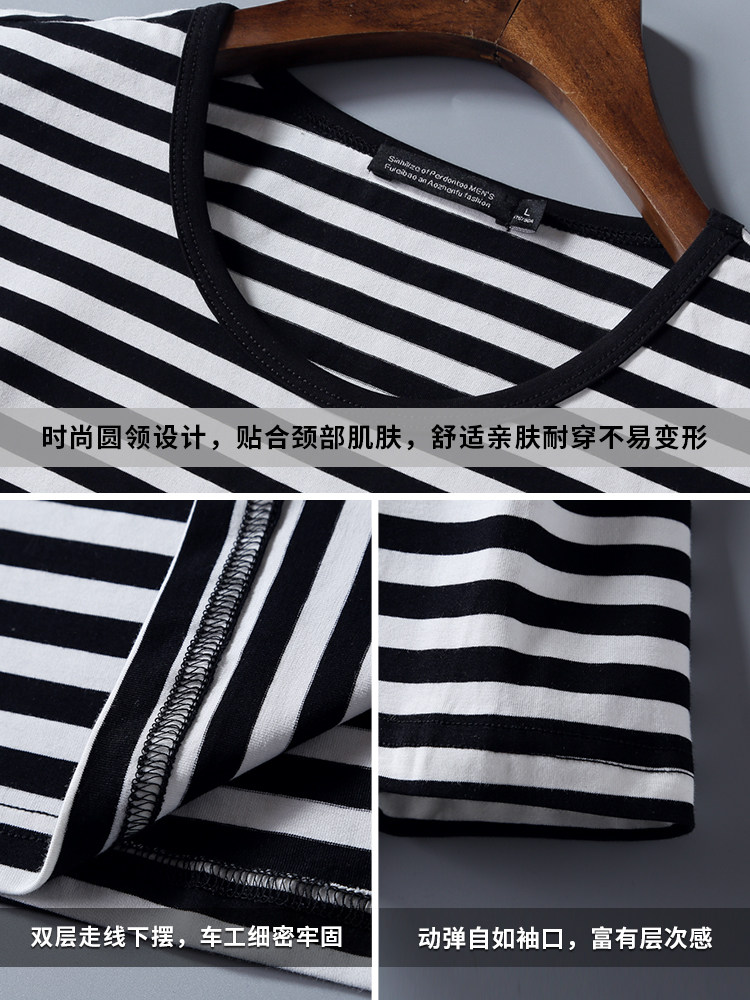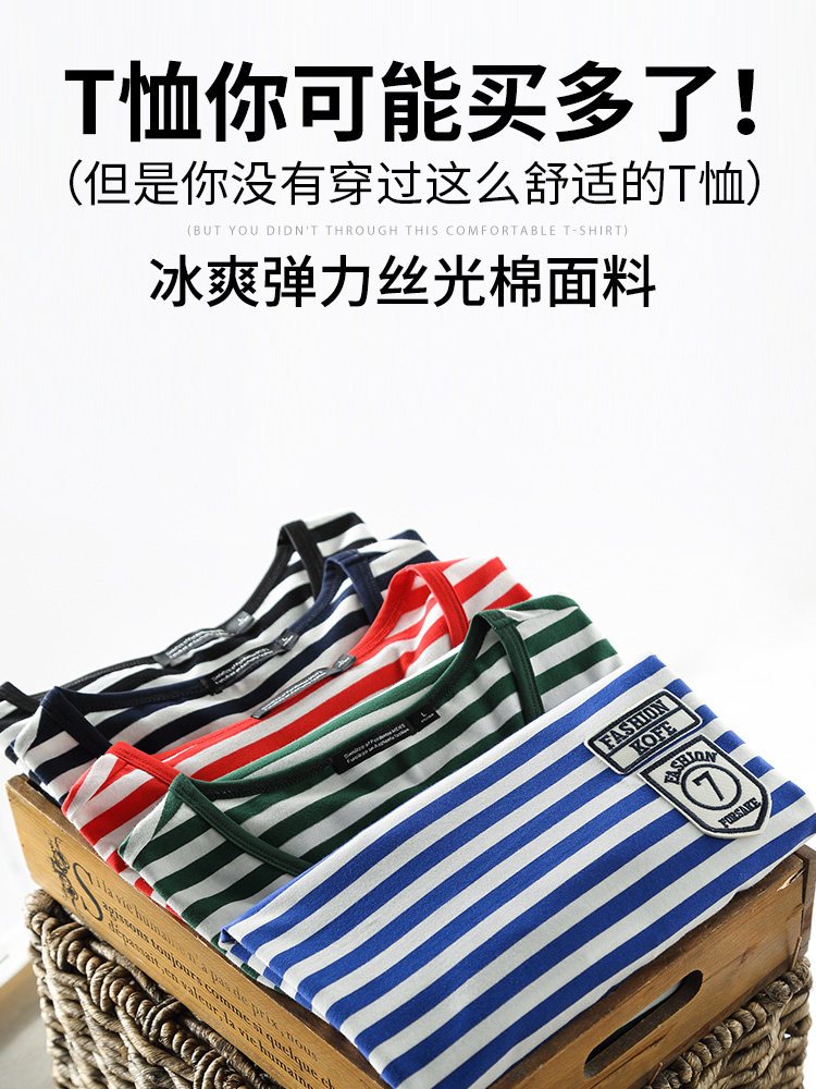 Fugui bird striped short sleeve T-shirt male silk light cotton new port of the sea Soul Sweatshirt with trendy round collar ice-and-half sleeves