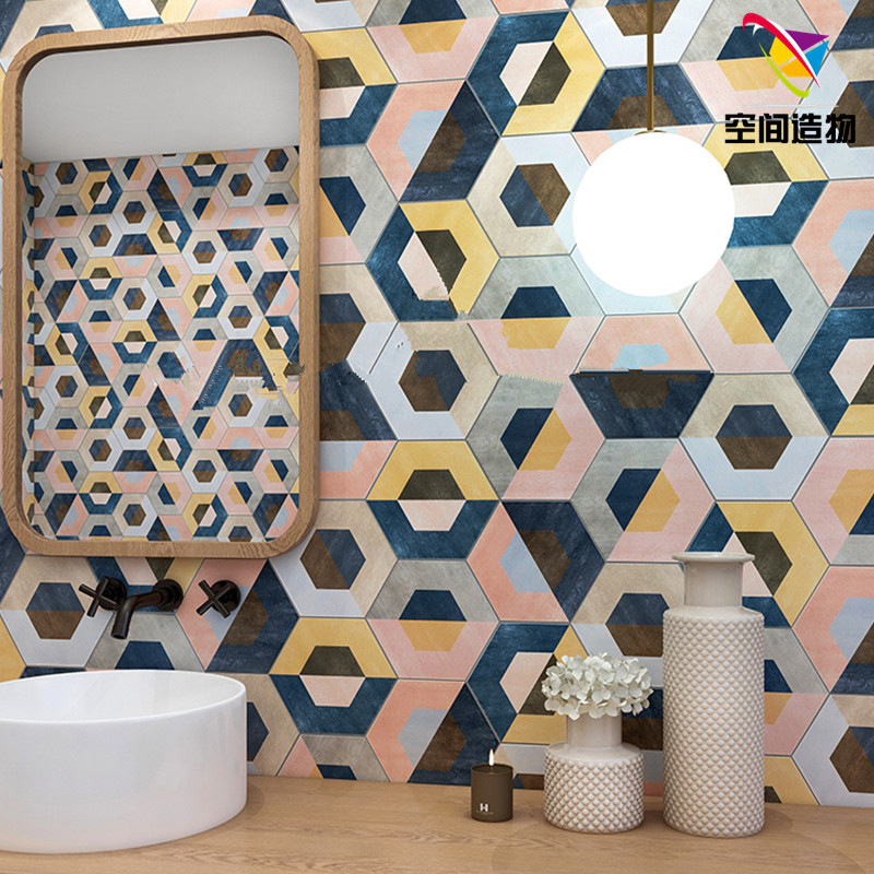 Nordic ins net red small flower brick hexagonal brick dining room Balcony Geometric Tile Floor Brick brick Flake Make-up Room Wall Brick