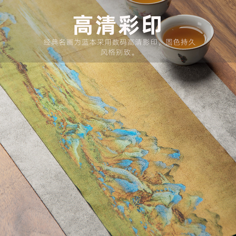 Fluff printed tea table (Kuri River Mountain) Fluffy printed tea table (Ruihe Tu) Fluff printed tea table (Fuchun Mountain) Fluff printed tea table (Qingming Upper River map)