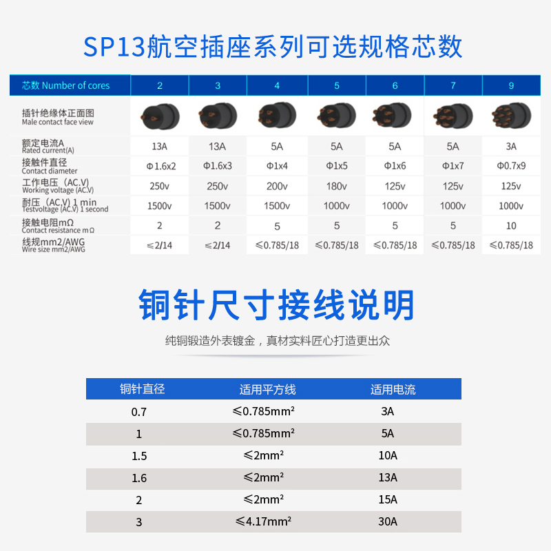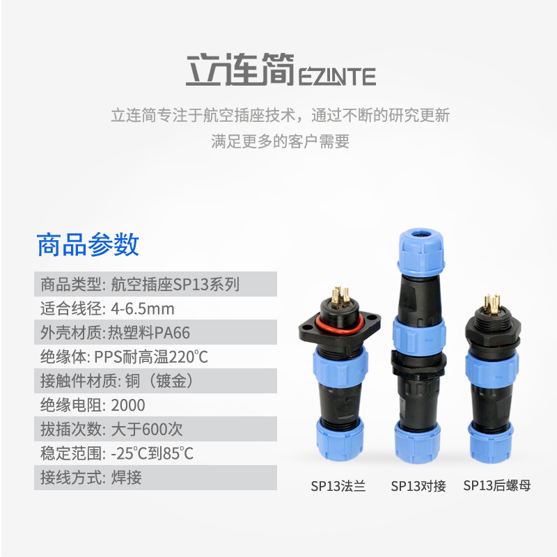 Waterproof connector aviation plug welding male and female butt socket rear nut flange wire connection rainproof SP13