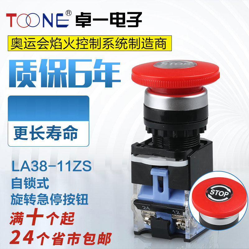 Zhuo Yi Self-reset self-locking button switch Emergency stop button LA38-11M mushroom head round red and green 22mm
