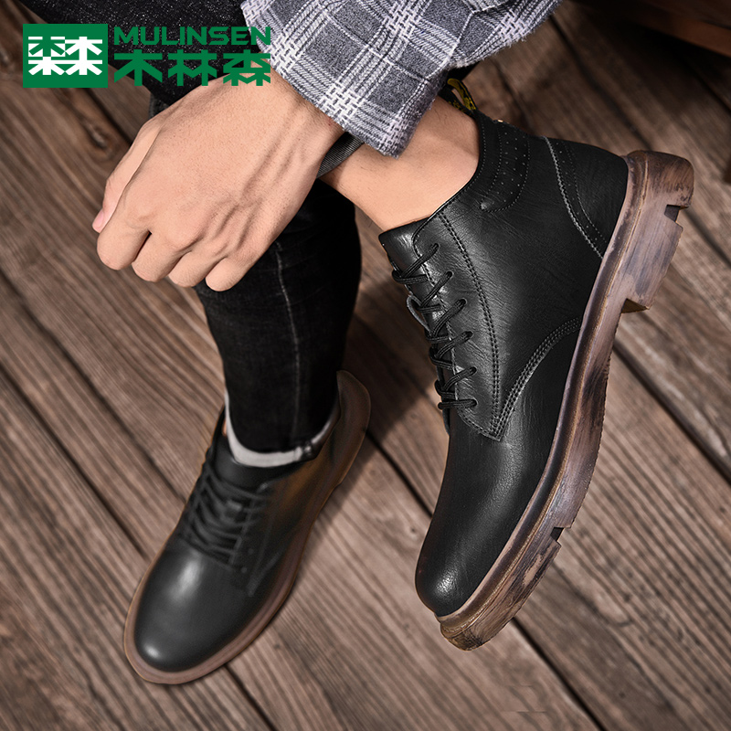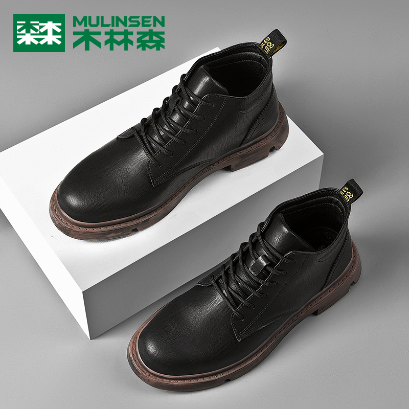 Mulinsen casual leather shoes men's autumn British style leather retro tooling trend all-match medium and high Martin boots