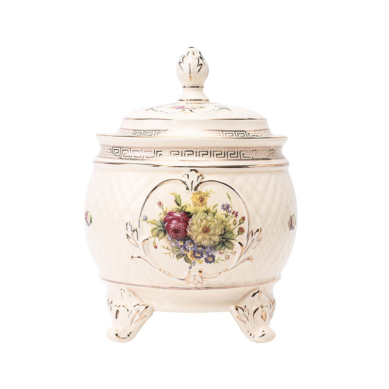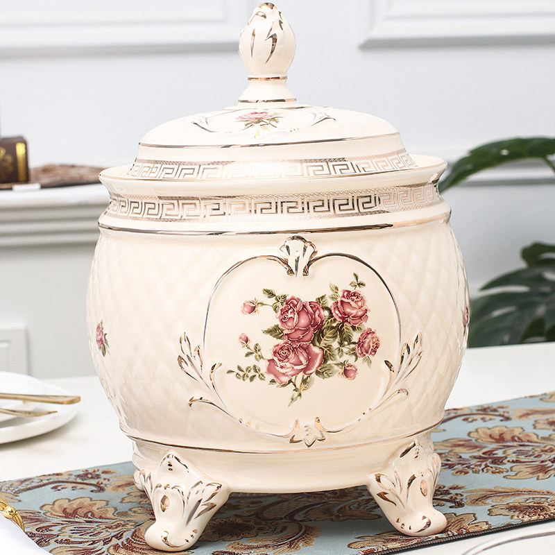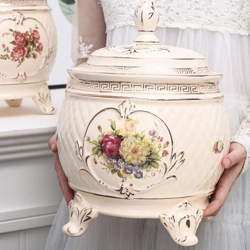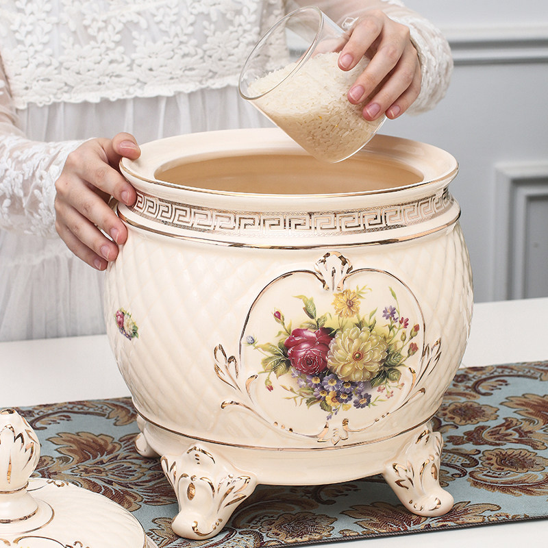 European-style household ceramic rice tank with lid insect-proof moisture-proof sealed rice bucket kitchen rice storage box large storage 20 catties