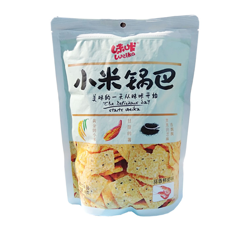 60G*10 packs of four flavors188G*4 packs of WeikaFour flavours 188G*4 packs of Weika Garlic Shrimp 188G*4 packs of Weika BBQ Flavor 188G*4 packs of Weika Mexican