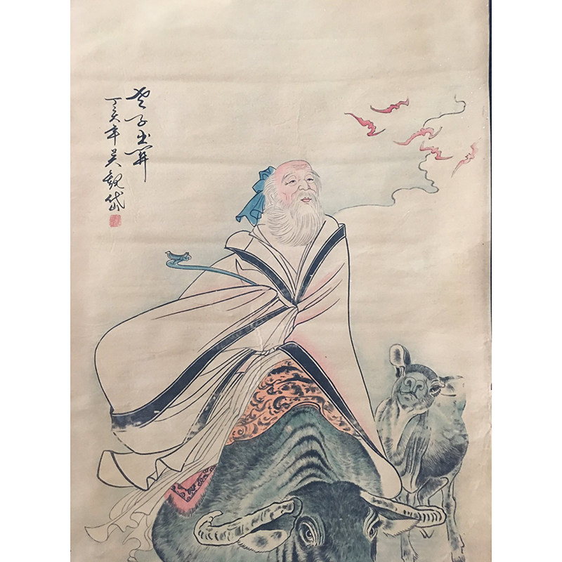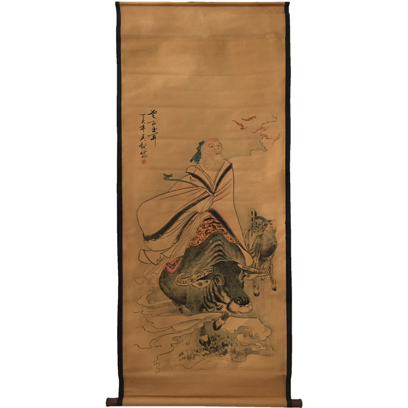 Antique made old name herringbone painting ancient painting country painting Chinese painting Chinese painting hall painting Living room decoration scroll hanging painting Qingkura Laozi Out of the picture-Taobao