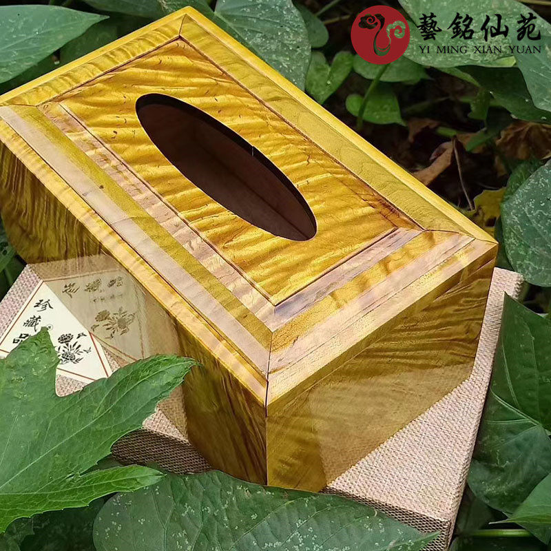 Big leaf gold silk Nanmu tissue box Large wooden dining room pumping paper box Napkin box Living room desktop tissue storage box