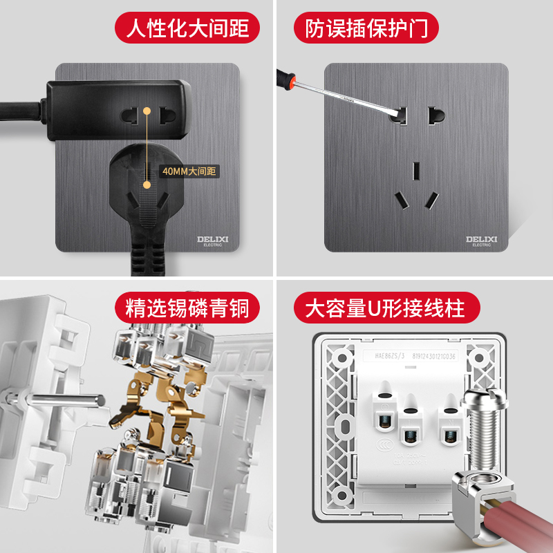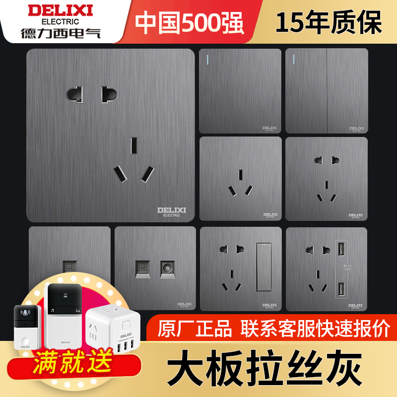 Inclined pentapore (China 500 strong enterprises) positive five holes (15 years quality guarantee) (large plate wire drawing ash) 7-hole socket (large plate wire drawing ash) open five holes (large plate wire drawing ash) Double USB five holes (large