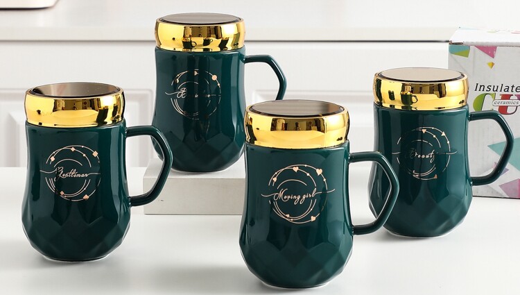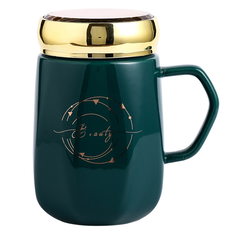Creative Trend Mirror Cup Ceramic Mark Cup with Spoon Personality Office large capacity for men and women's household water cup