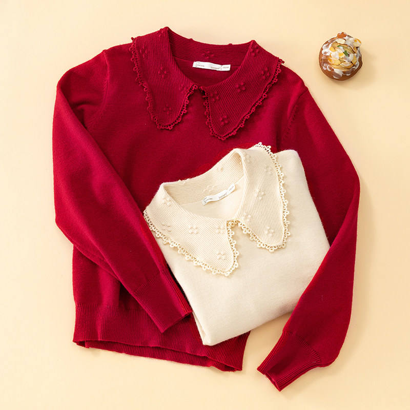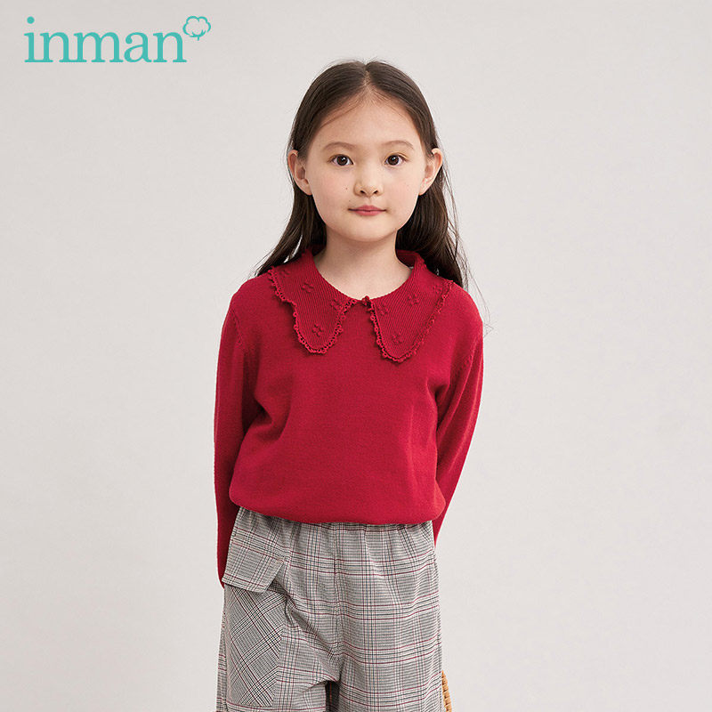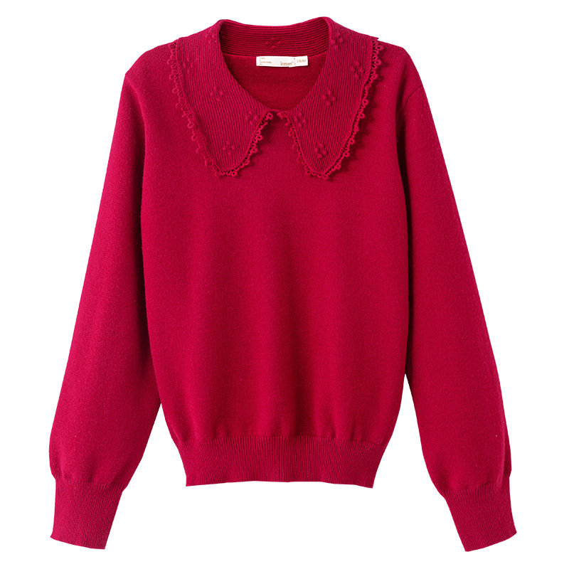 Inman children's clothing girl red sweater mother and daughter dress gas 2023 new child knitting shirt