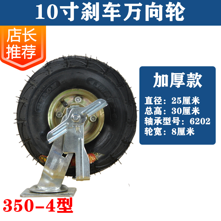 350-4 Inflatable Universal Wheels 10 Inch Pneumatic Tires Flat Trolley Trolley Heavy Duty Rubber Directional Wheels with Brakes
